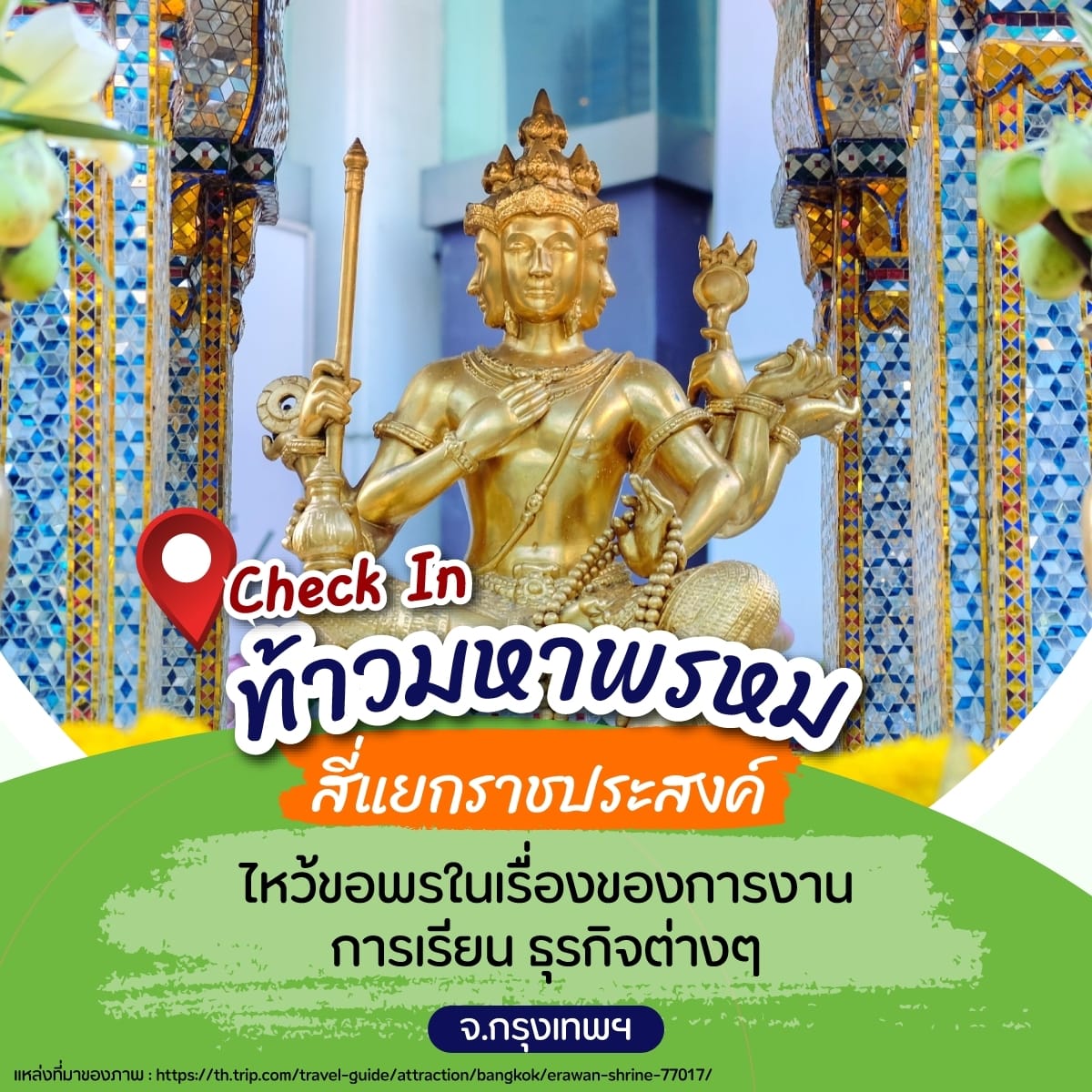 1. สักการะองค์ #ท้าวมหาพรหมศาลท้าวมหาพรหม หน้าโรงแรมแกรนด์ไฮแอทเอราวัณ สี่แยกราชประสงค์ เป็นอีกหนึ่งสถานที่ที่แนะนำว่าต้องมาค่ะ เป็นสิ่งศักดิ์สิทธิ์ที่ทั้งคนไทยและชาวต่างชาติให้ความเคารพนับถือ หากไม่มี Covid เราจะได้เห็นพลังศรัทธาคณะทัวร์จากต่างประเทศมากมายที่เข้ามาสักการะองค์ท้าวมหาพรหม ณ. สถานที่แห่งนี้.ตามตำนานมีความเชื่อว่าพระพรหมเป็นผู้สร้าง ผู้ลิขิตความเป็นไปของทุกสรรพสิ่งของมนุษย์ หากใครที่อธิษฐานและบูชาพระพรหมด้วยจิตใจที่บริสุทธิ์ เชื่อว่าจะได้รับพรให้สมหวังในสิ่งที่หวังไว้ และเนื่องจากพระพรหมมี 4 พักตร์ จึงต้องบูชาพระพรหมให้ครบทั้ง 4 พักตร์ 4 ทิศ การไหว้ให้ครบทุกพักตร์จะเป็นการได้รับพรครบทุกประการ ทั้งด้านการงาน ด้านการเงิน ด้านสุขภาพครอบครัวความรัก และด้านโชคลาภไปตลอดปี 2565 เลยค่ะ (สายมู ห้ามพลาดนะค้า)
